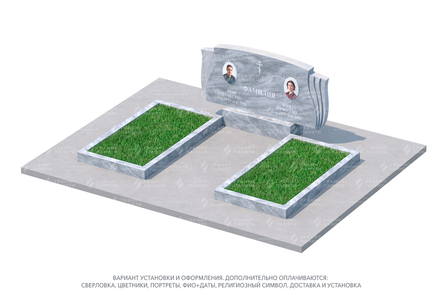 Форма и стиль — возможность выбора среди горизонтальных, вертикальных, семейных или мемориальных памятников.